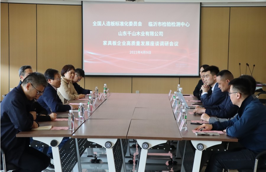 全國人造板標(biāo)準(zhǔn)化技術(shù)委員會(huì)、臨沂市檢驗(yàn)檢測中心領(lǐng)導(dǎo)一行蒞臨千山木業(yè)調(diào)研指導(dǎo)