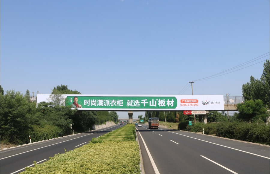 近日,千山在山東省重點(diǎn)高速路段投放14座跨線橋和立柱媒體廣告,再次橫跨山東省內(nèi)多條主干線,如泰新高速、京臺(tái)高速、日蘭高速、青銀高速等,覆蓋山東省及其他省市區(qū)域。高速廣告形式依舊涵蓋跨線橋、單立柱等,廣告畫面鮮艷,以綠色為主色調(diào),可視距離美觀、簡潔,進(jìn)一步將“時(shí)尚潮派衣柜 就選千山板材”的品牌主張傳遞給更多的消費(fèi)