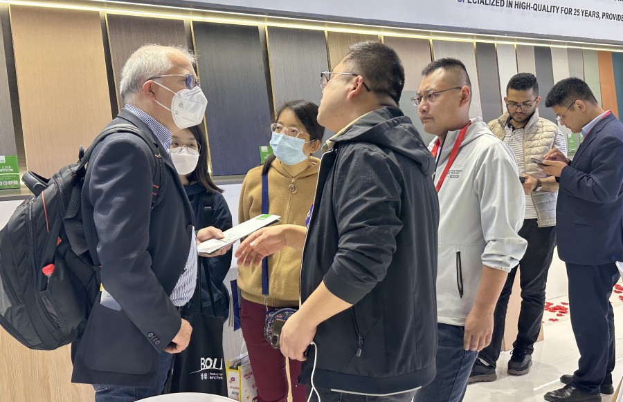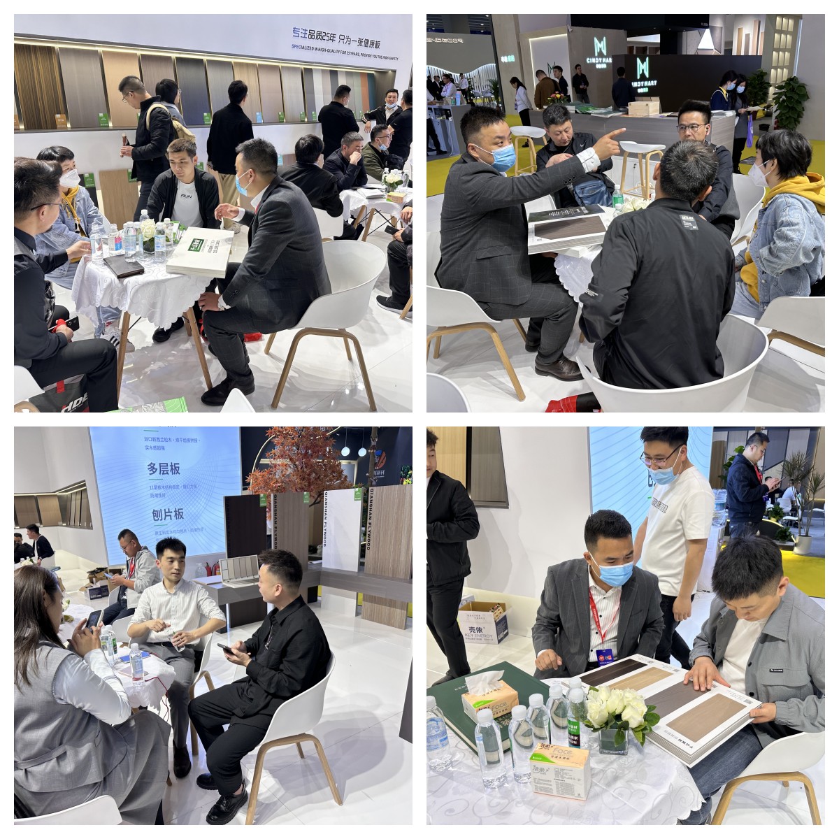 千山家具板憑借高品質(zhì)、高顏值、高環(huán)保的產(chǎn)品特點(diǎn)在展會(huì)上大放異彩,展位人頭攢動(dòng),十分熱鬧!觀(guān)展來(lái)訪(fǎng)客戶(hù)紛紛對(duì)千山產(chǎn)品表示贊賞和支持。
