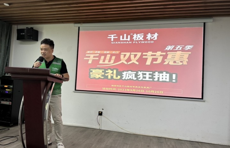 2023年9月26日,千山板材第五屆雙節(jié)惠暨千山板材新品發(fā)布會在江西省贛州市火爆開啟!活動時間長達一個月,工廠直供,產(chǎn)品質量優(yōu)異,價格實打實優(yōu)惠!本次活動不僅為消費者提供了勁爆的優(yōu)惠政策,更是奉上了一系列驚喜豪禮與真摯服務。