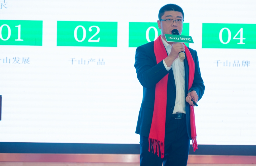 千山板材常德運(yùn)營(yíng)中心總經(jīng)理肖波致辭。肖總鋪開產(chǎn)品升級(jí)迭代的大背景,給大家分享了千山板材在常德市場(chǎng)的發(fā)展動(dòng)態(tài)以及接下來的奮斗目標(biāo)。