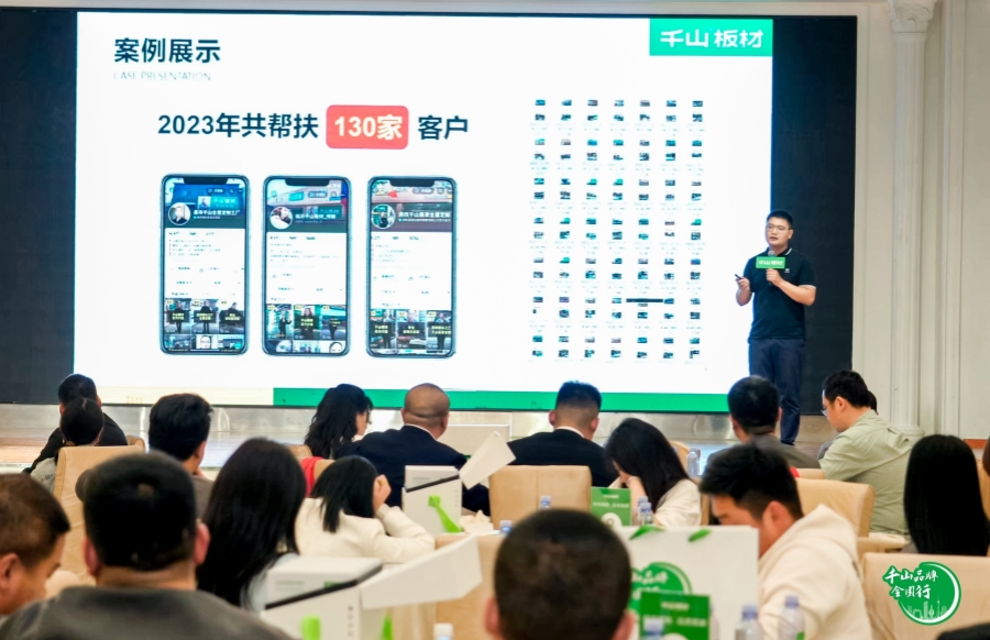 千山板材大區(qū)經(jīng)理王殿忠為大家分享了《新媒體運(yùn)營(yíng)獲客》,向大家展示了千山板材優(yōu)秀經(jīng)銷(xiāo)商的短視頻賬號(hào)實(shí)例,對(duì)標(biāo)簽內(nèi)容進(jìn)行剖析,鼓勵(lì)大家勇于提升新媒體運(yùn)營(yíng)能力,挖掘線上客戶(hù),助力終端銷(xiāo)售。