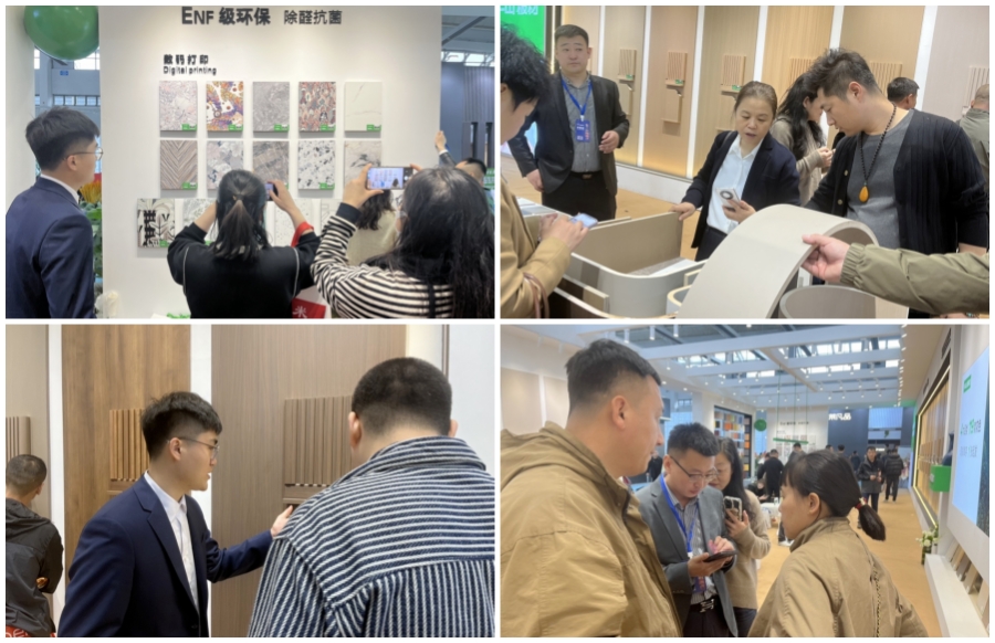 此次參展,千山板材全程幫扶式的加盟政策吸引了眾多觀(guān)展客戶(hù)前來(lái)咨詢(xún)、洽談合作,現(xiàn)場(chǎng)的小伙伴們?nèi)棠托闹v解,相繼斬獲了大量意向簽約合作。
