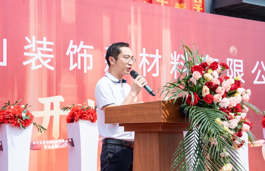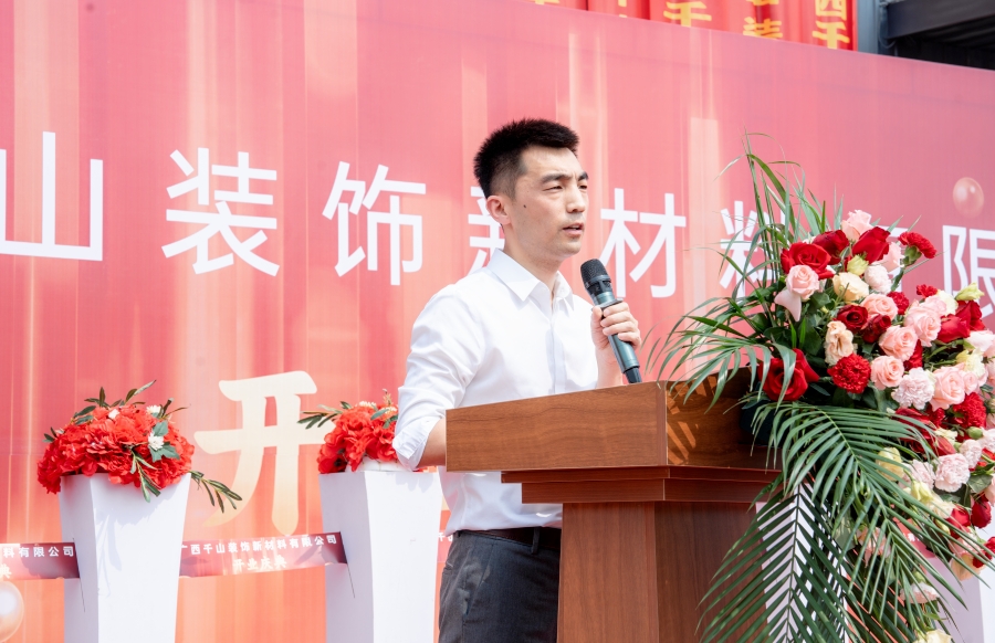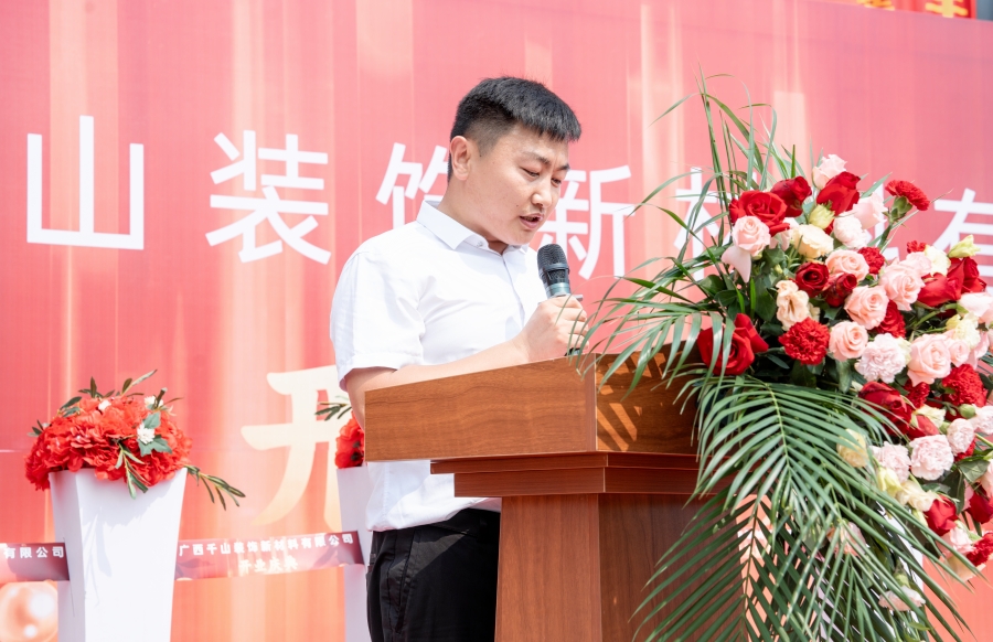 隨后,廣西千山裝飾新材料有限公司總經(jīng)理邵廣峰發(fā)表講話。邵總表示,廣西生產(chǎn)基地將秉承集團的發(fā)展宗旨,在政府和協(xié)會的領(lǐng)導(dǎo)下,整合利用市場資源優(yōu)勢,加強管理、提升技術(shù),以高昂的熱情積極投身于各項生產(chǎn)經(jīng)營活動,助力集團的高質(zhì)量發(fā)展,同時為推動行業(yè)的發(fā)展作出應(yīng)有的貢獻(xiàn)。