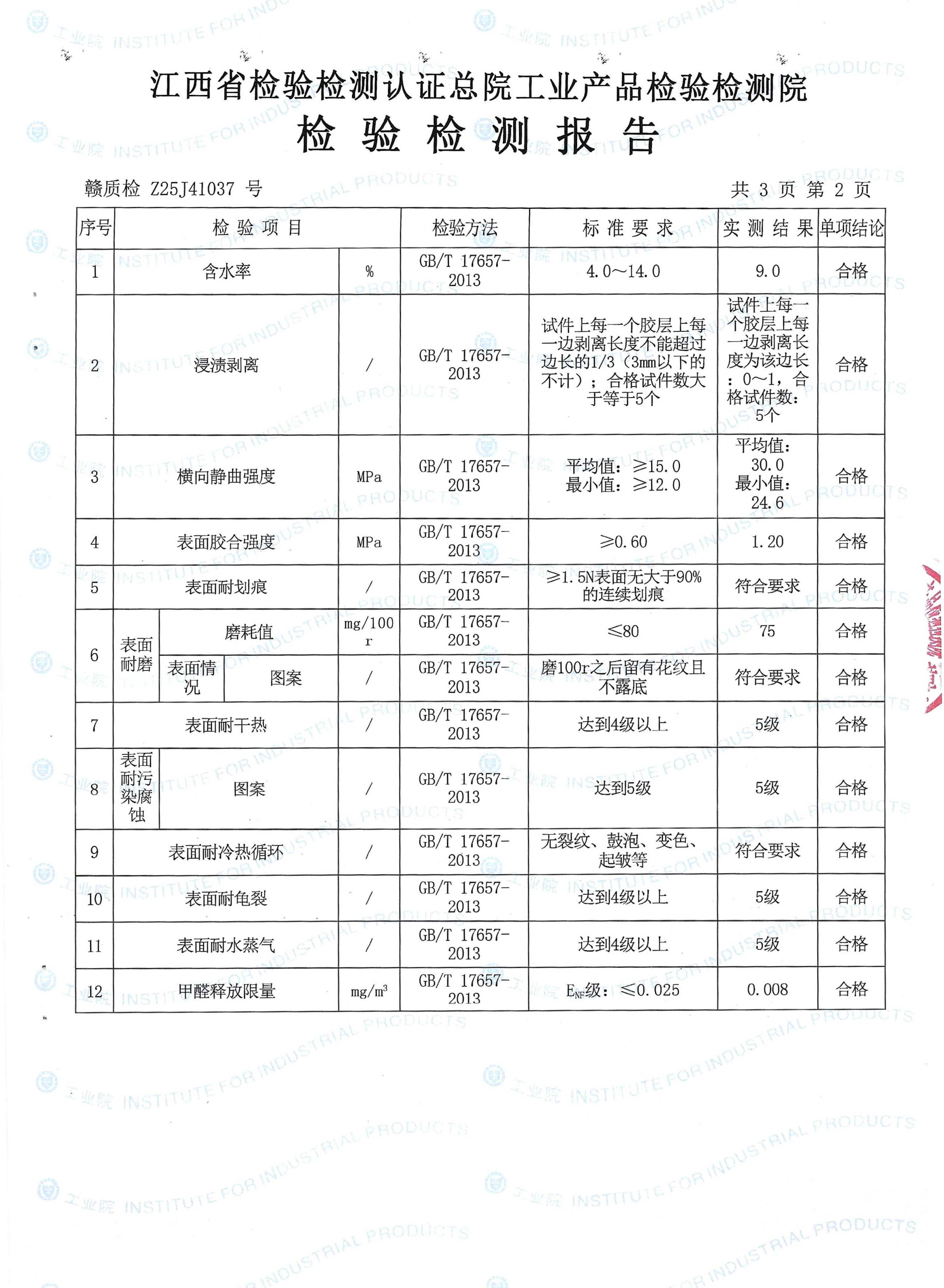 板材是否“經(jīng)久耐用”,需要通過專業(yè)的靜曲強度、膠合強度、耐磨性等多維度物理指標來驗證,而千山板材在此次抽檢中,交出了一份“全優(yōu)答卷”。在全方位性能檢測中,千山板材的含水率、浸漬剝離強度、表面耐劃痕性能、表面耐磨性均優(yōu)于國家標準要求。