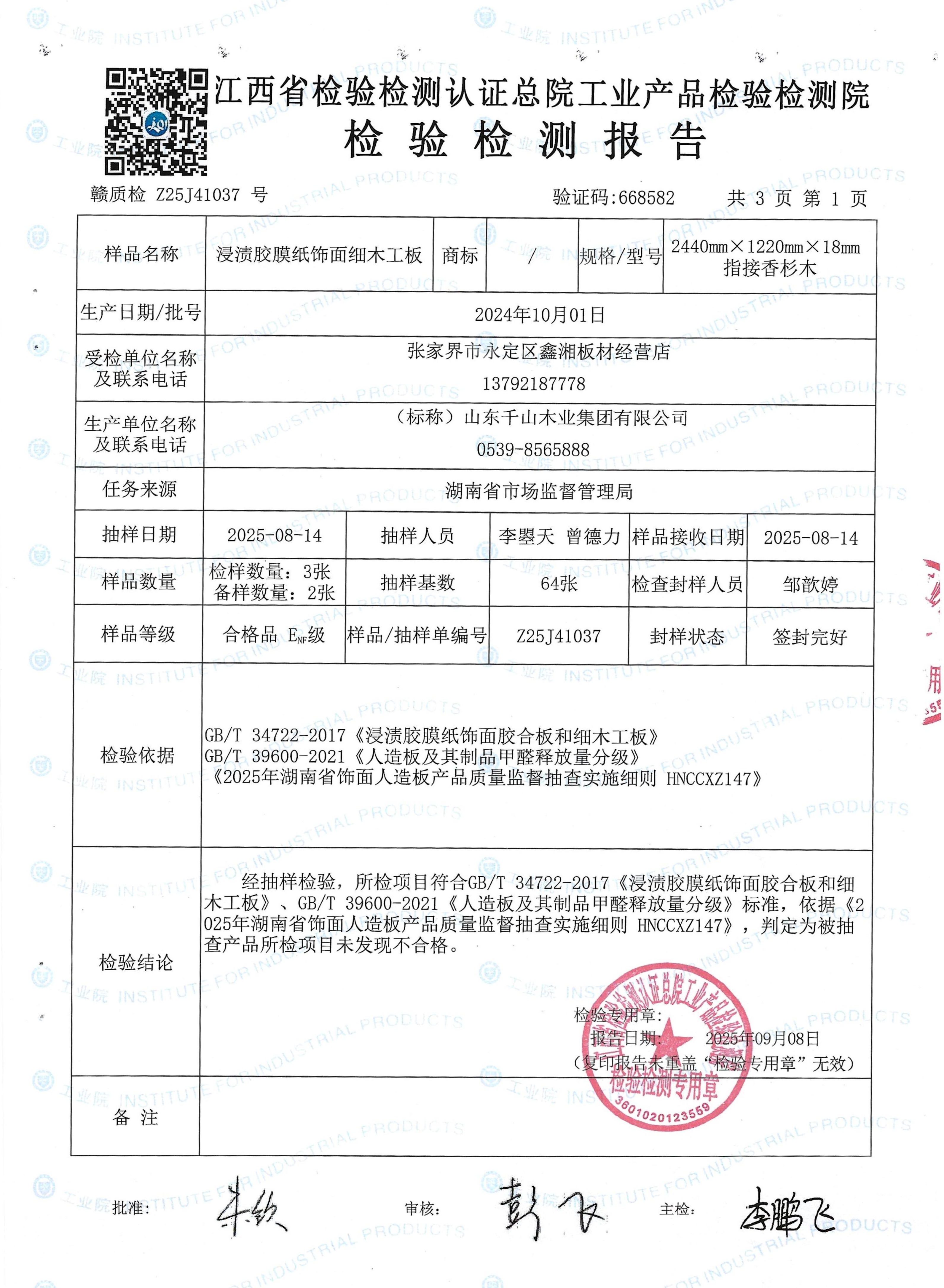 不同于企業(yè)自報的檢測數(shù)據(jù),此次抽檢是由湖南省市場監(jiān)督管理局主導的隨機性、公正性檢測,檢測結(jié)果更具公信力。千山板材能在此次抽檢中脫穎而出,不僅體現(xiàn)了對產(chǎn)品品質(zhì)的嚴格把控,更證明了在環(huán)保與耐用性上的實力。