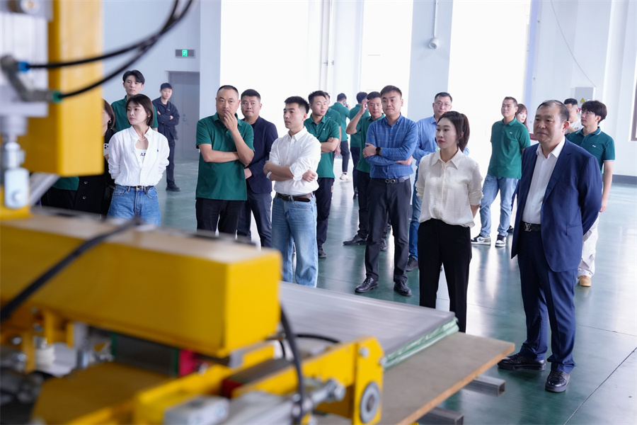 隨著彩帶落剪,啟動(dòng)指令同步發(fā)出,德國溫康納生產(chǎn)線開啟運(yùn)轉(zhuǎn)!當(dāng)?shù)谝粡埥?jīng)由新生產(chǎn)線制造出的板材緩緩輸送至下線口時(shí),全場(chǎng)掌聲雷動(dòng),不僅宣告了千萬級(jí)生產(chǎn)線的圓滿調(diào)試成功,更象征著千山品質(zhì)新紀(jì)元的開啟。