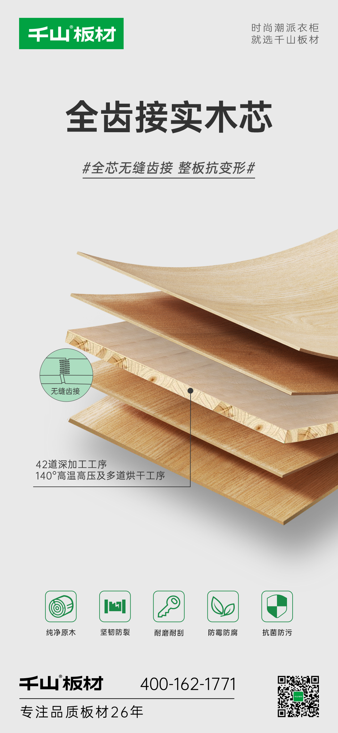 千山板材實木板順勢而生,甄選天然香杉木為原料,自帶原木醇香,實木芯性能更優(yōu)異,環(huán)保達國標最高ENF級,用品質(zhì)呵護我們的家居健康。