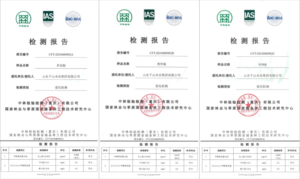 此次,千山板材實木多層板、實木香杉木板、實木刨片板均通過甲醛釋放量分級和F☆☆☆☆甲醛釋放量檢測,檢測數(shù)值均優(yōu)于標準要求。