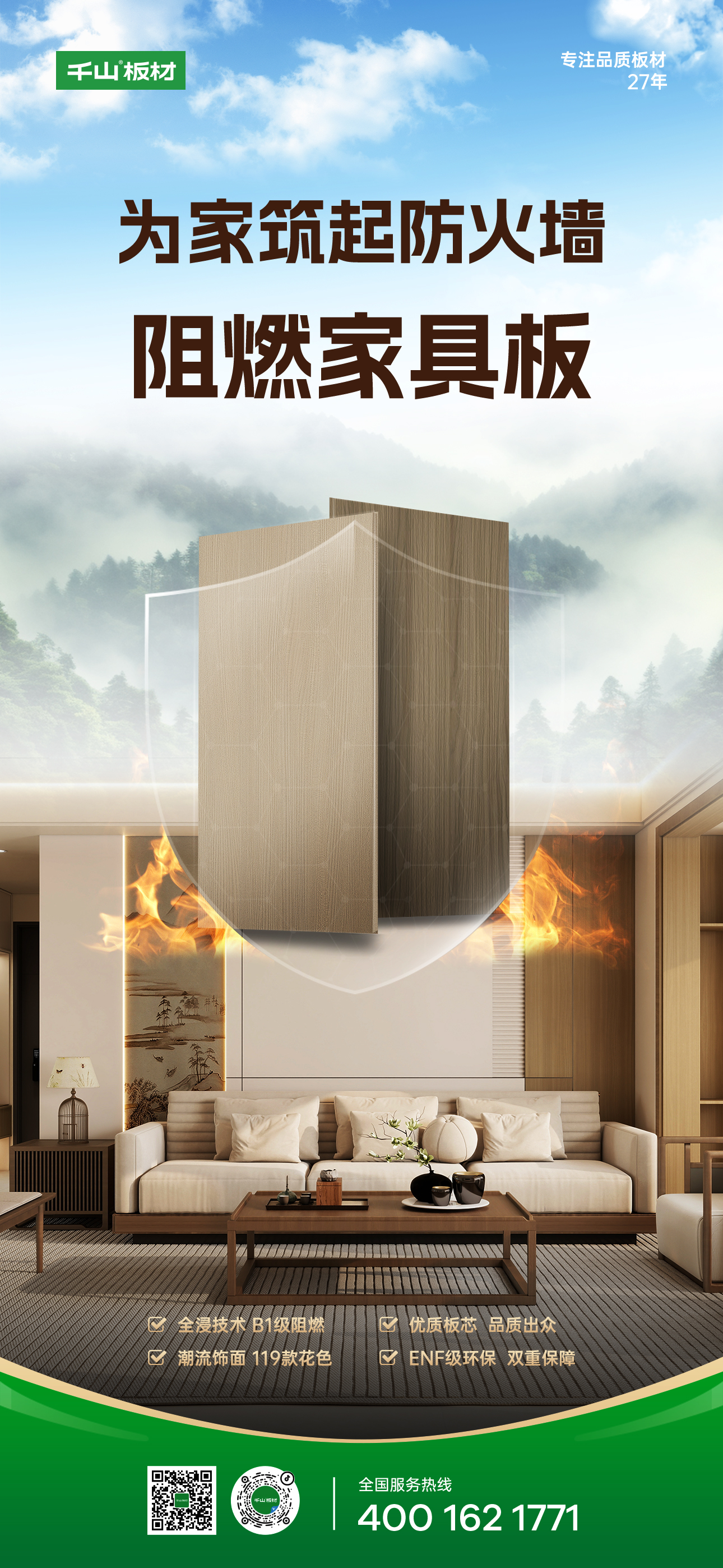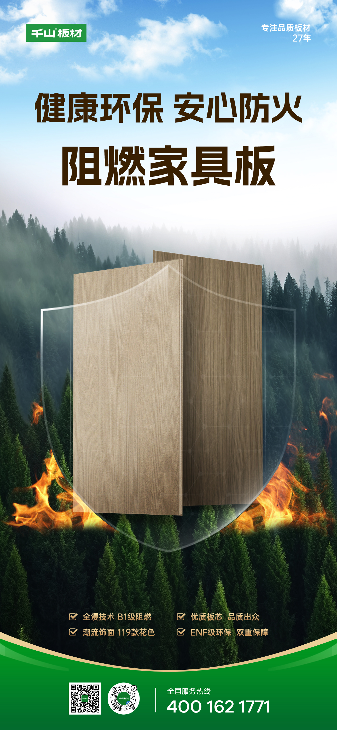 從“符合標(biāo)準(zhǔn)”到“主動防護(hù)”,板材安全性能成為大家極為關(guān)注的重要指標(biāo),特別是在家庭環(huán)境中,健康和安全是首要考慮因素。千山阻燃家具板,將科技飾面與安全阻燃技術(shù)相融合,為家居空間“抵抗力”加分。