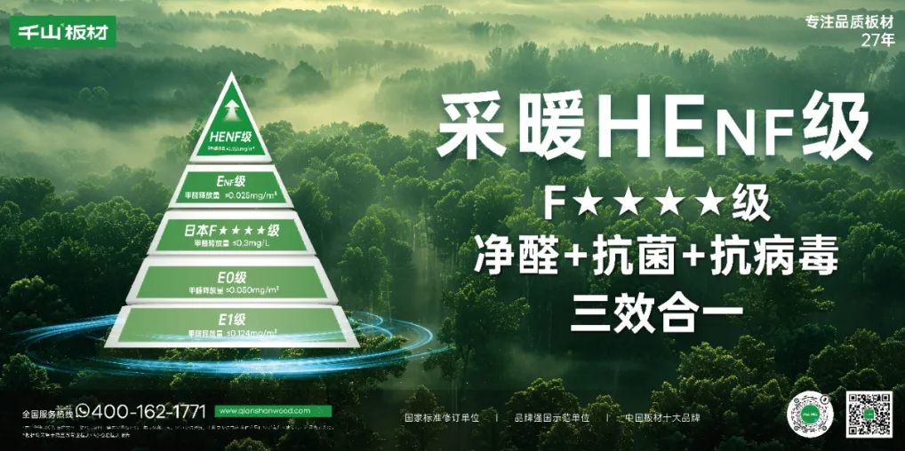 千山板材通過國(guó)標(biāo)ENF級(jí)和F4星雙環(huán)保檢測(cè),進(jìn)階HEnf采暖級(jí)環(huán)保標(biāo)準(zhǔn),占領(lǐng)“采暖無醛級(jí)”環(huán)保制高點(diǎn)。在滿足消費(fèi)者對(duì)產(chǎn)品的高品質(zhì)、高環(huán)保需求后,全面升級(jí)推出凈醛、抗菌、抗病毒三效合一的凈醛板,為消費(fèi)者打造高凈品質(zhì)生活。