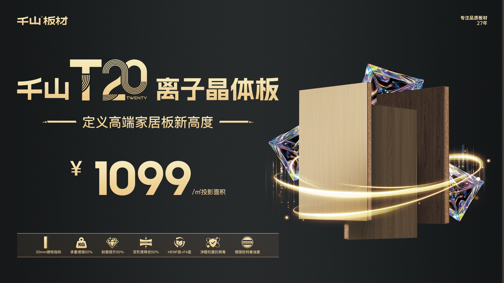 千山板材全新一代高端飾面板材@T20離子晶體板,1099元/㎡高燃上市,憑借剛強(qiáng)性能及多元飾面,有效提升了板材的耐用性和美觀性,再次刷新現(xiàn)代家裝對高端產(chǎn)品的需求,重新定義高品質(zhì)板材標(biāo)準(zhǔn)!