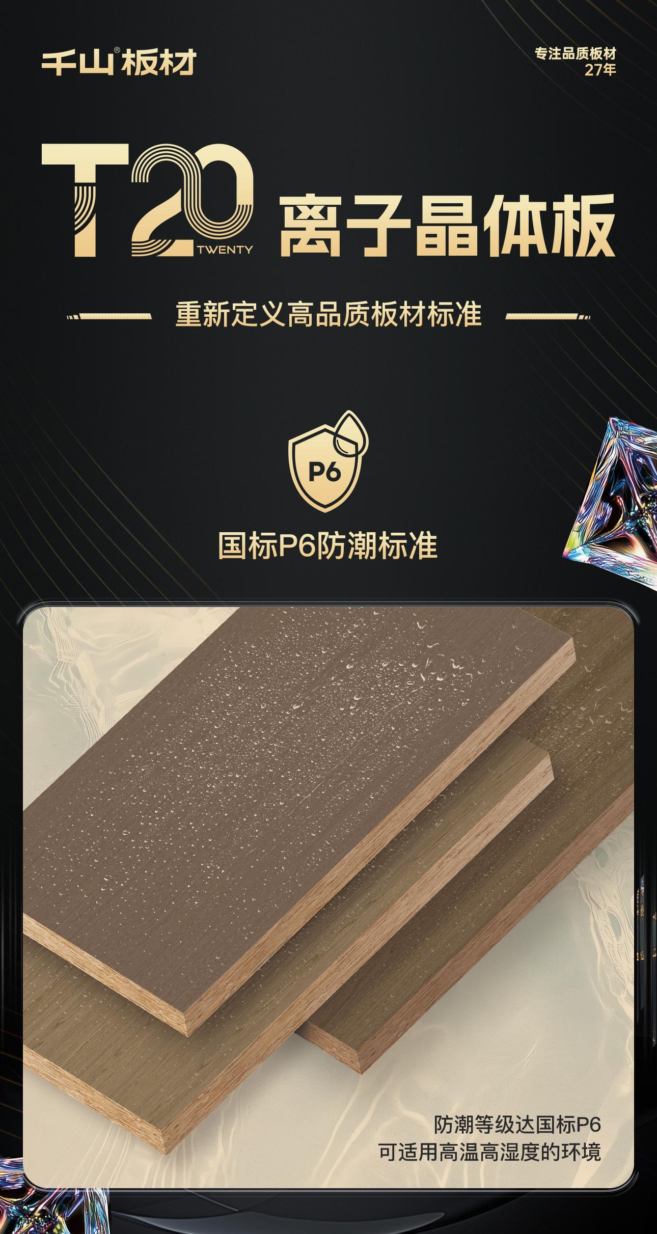千山板材重磅推出T20離子晶體板,以20mm厚度、高強(qiáng)承重、高能抗變形、超強(qiáng)耐磨的優(yōu)異性能,顛覆傳統(tǒng)門板的性能界限,重新定義高品質(zhì)板材標(biāo)準(zhǔn),實(shí)現(xiàn)產(chǎn)品穩(wěn)定性與空間美觀性的極致效果,成就柜體柜門通配、一門到頂?shù)某軕?yīng)用。