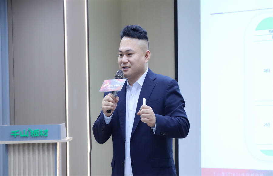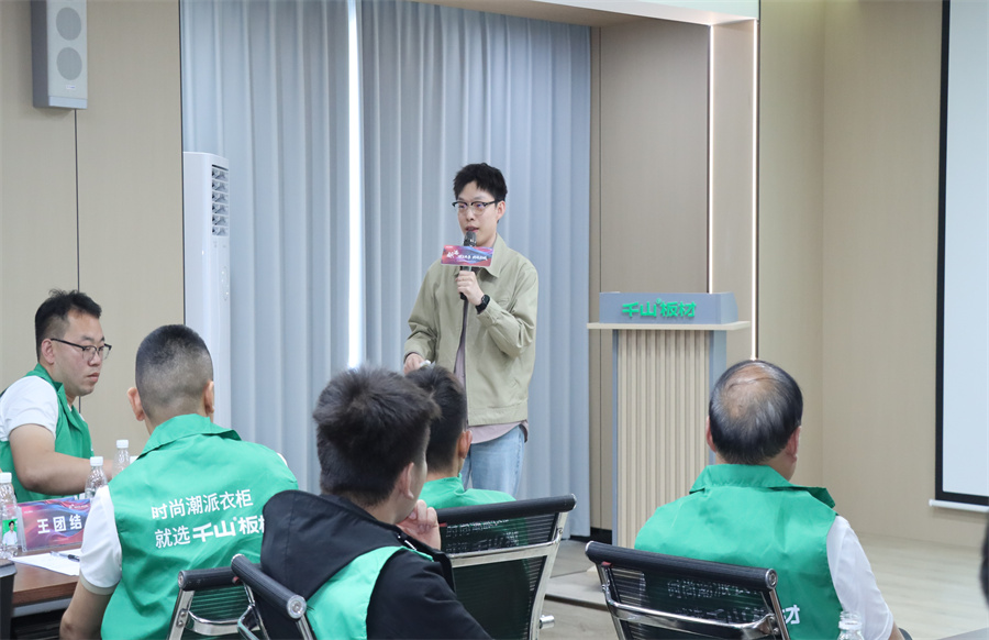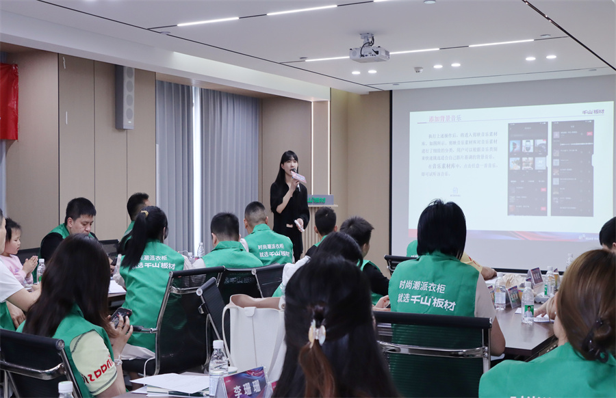 千山板材河南運(yùn)營中心總經(jīng)理程效章致辭。程總表示,短視頻和直播已成為搶占市場(chǎng)的核心賽道,抖音也將是經(jīng)銷商伙伴們開拓新市場(chǎng)的“超級(jí)武器”,希望伙伴們通過此次賦能特訓(xùn)掌握短視頻的營銷密鑰,在家居藍(lán)海中共贏未來!