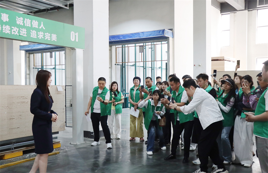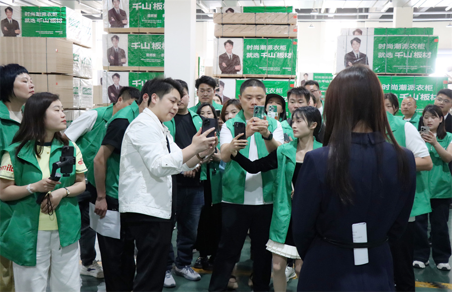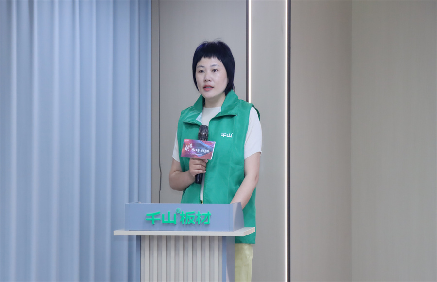 千山板材河南開封運(yùn)營中心負(fù)責(zé)人柳娜致辭。柳總強(qiáng)調(diào),抖音正成為連接品質(zhì)家居與用戶需求的關(guān)鍵橋梁。千山板材以“環(huán)保+品質(zhì)”為核心,恰恰是短視頻內(nèi)容創(chuàng)作的優(yōu)質(zhì)素材,從板材的基材工藝到成品家具的顏值落地,從工廠的智能制造到終端客戶的滿意反饋,每一個(gè)環(huán)節(jié)都自帶“流量基因”。