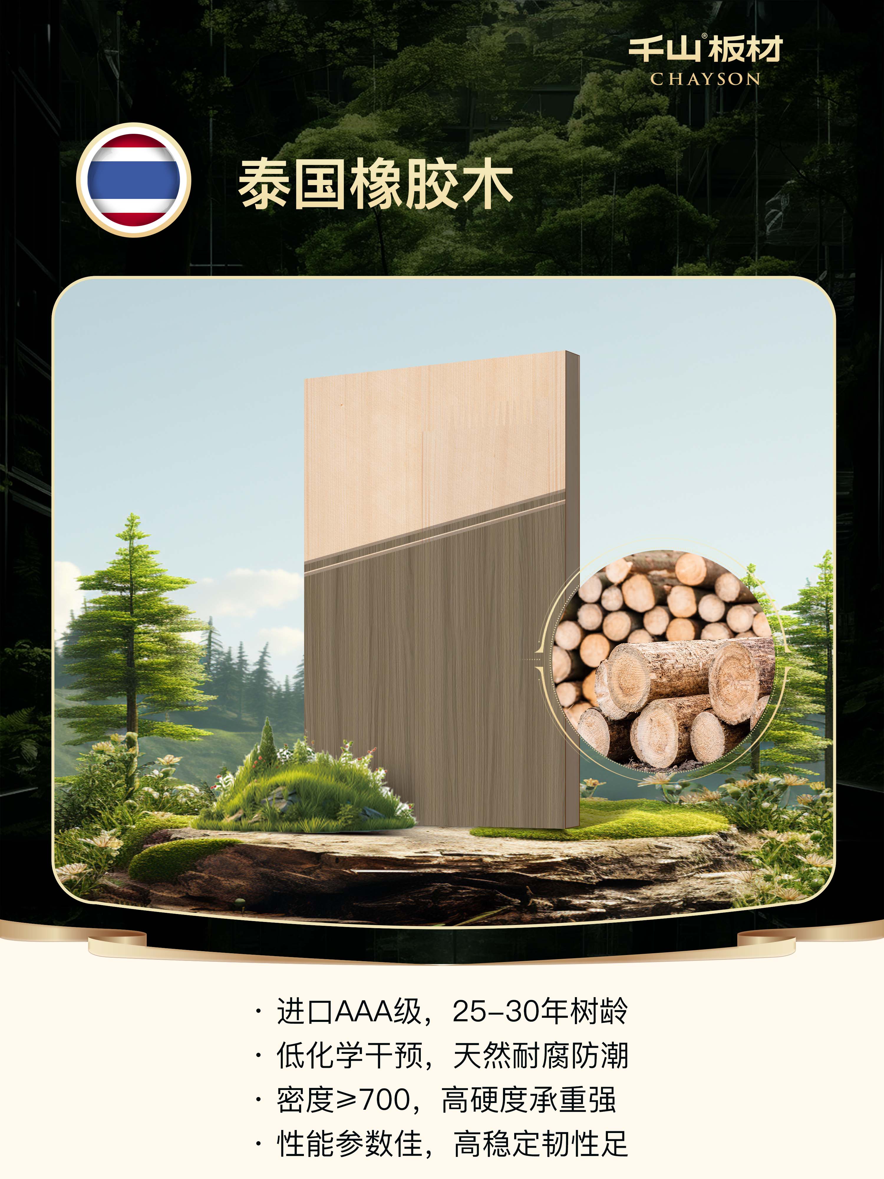 泰國橡膠木樹齡約25-30年,密度≥700,木質(zhì)較硬,穩(wěn)定性高。天然耐磨性、耐腐蝕性,防潮性等參數(shù)俱佳。