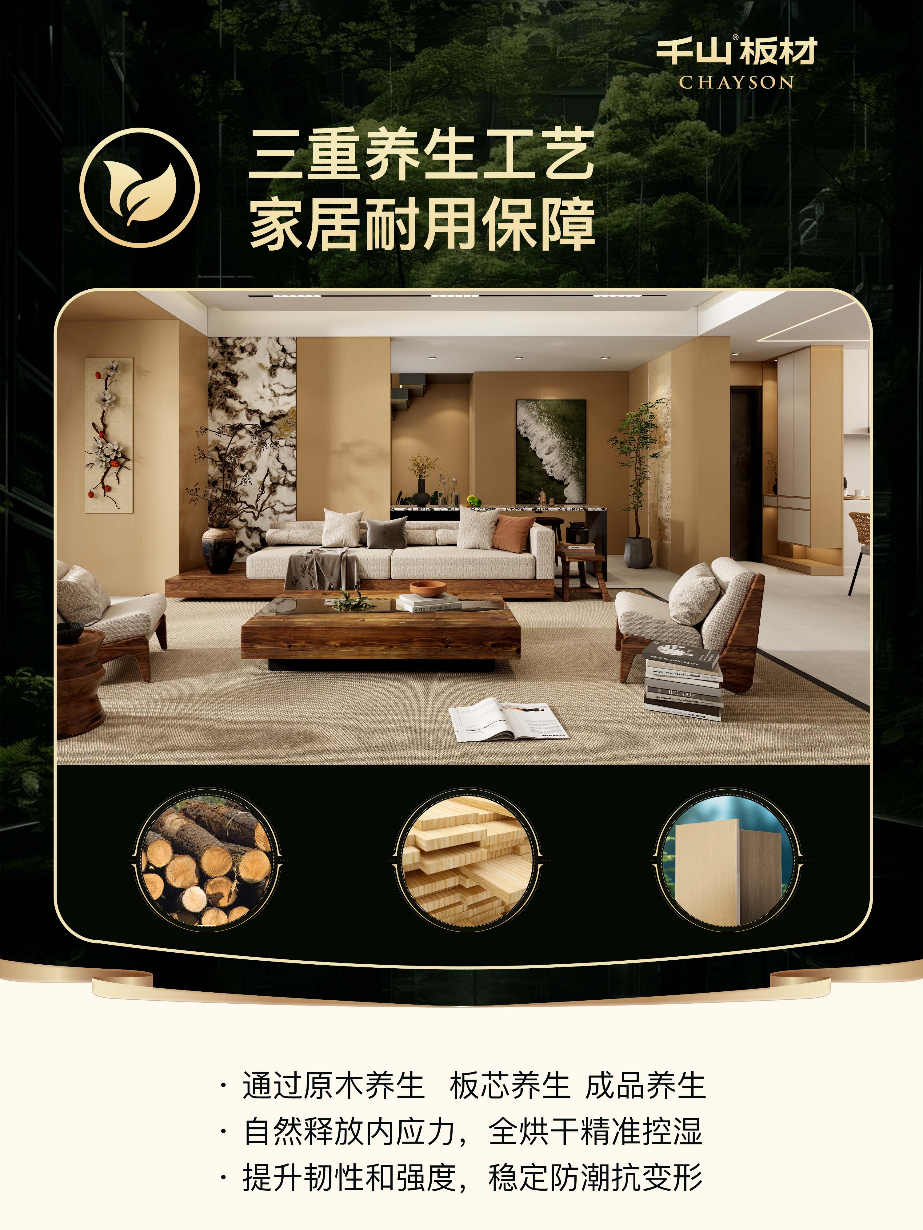 千山原木板質(zhì)地天然,綠色00苯添加,環(huán)保達(dá)采暖HENF級(jí),融入凈醛、抗菌、抗病毒功能工藝,讓家不止于美觀,更是一方安心健康的守護(hù)。
